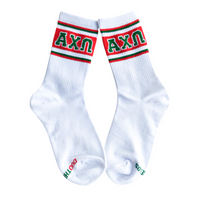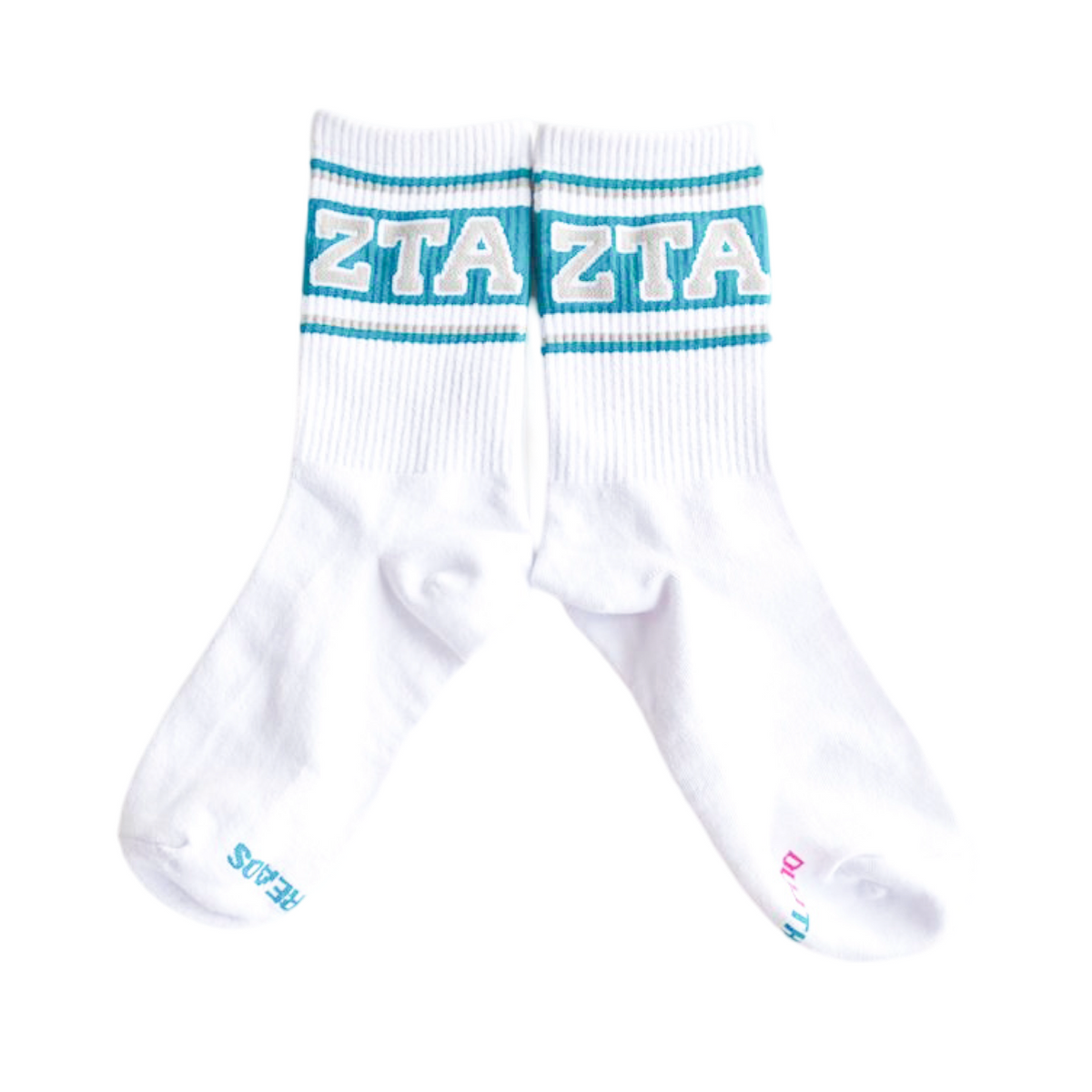 Step up your sock game with these classic striped crew socks, designed for comfort and sorority pride! Featuring bold stripes and your sorority's lettering across the top, these socks are perfect for lounging, game days, or adding a subtle touch of Greek spirit to any outfit. Soft, stretchy, and stylish, they’re a must-have for every sorority sister’s wardrobe.